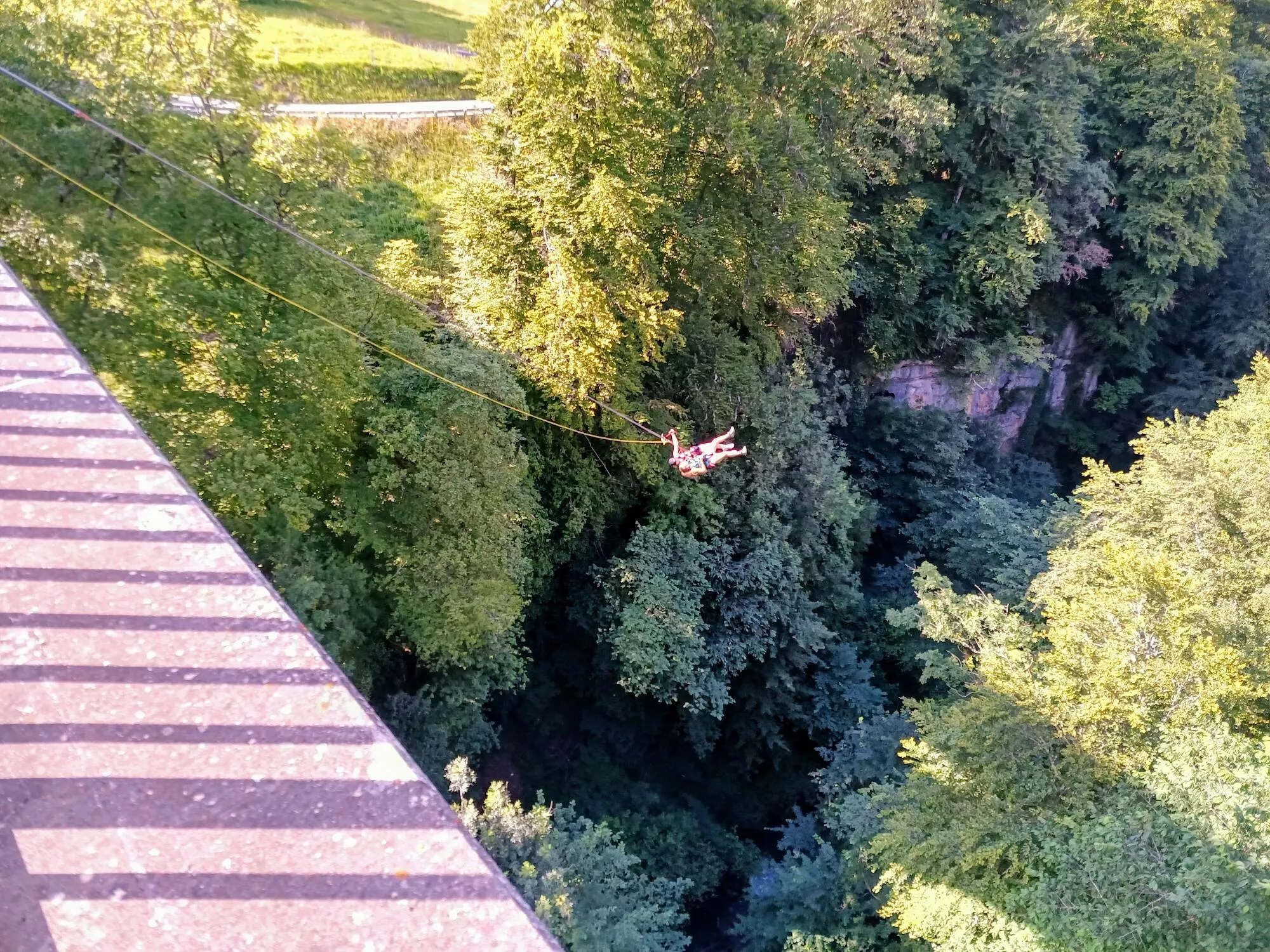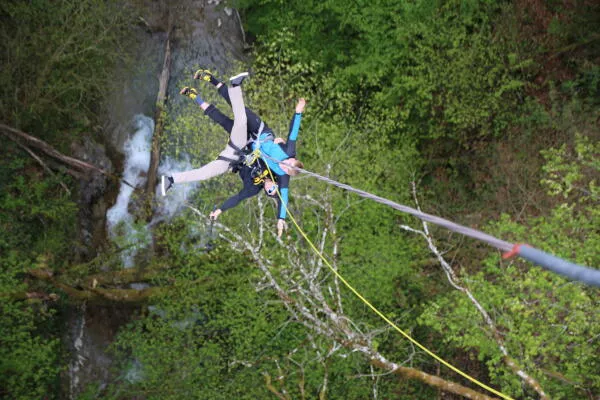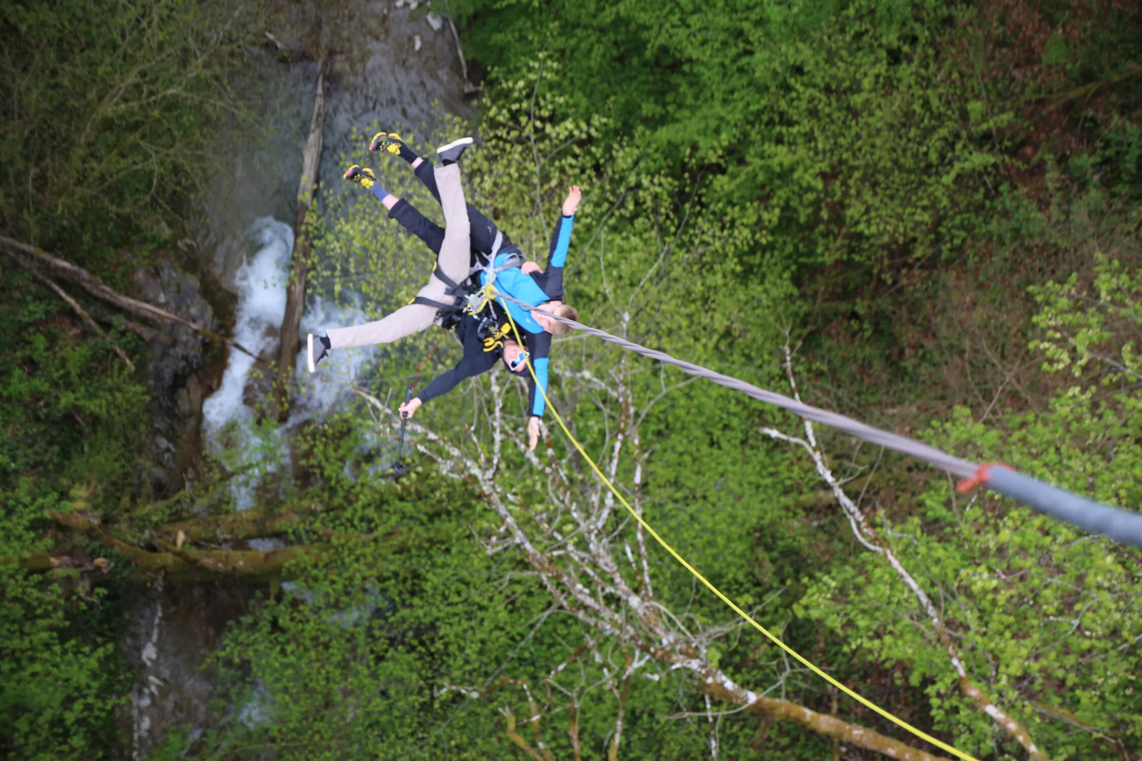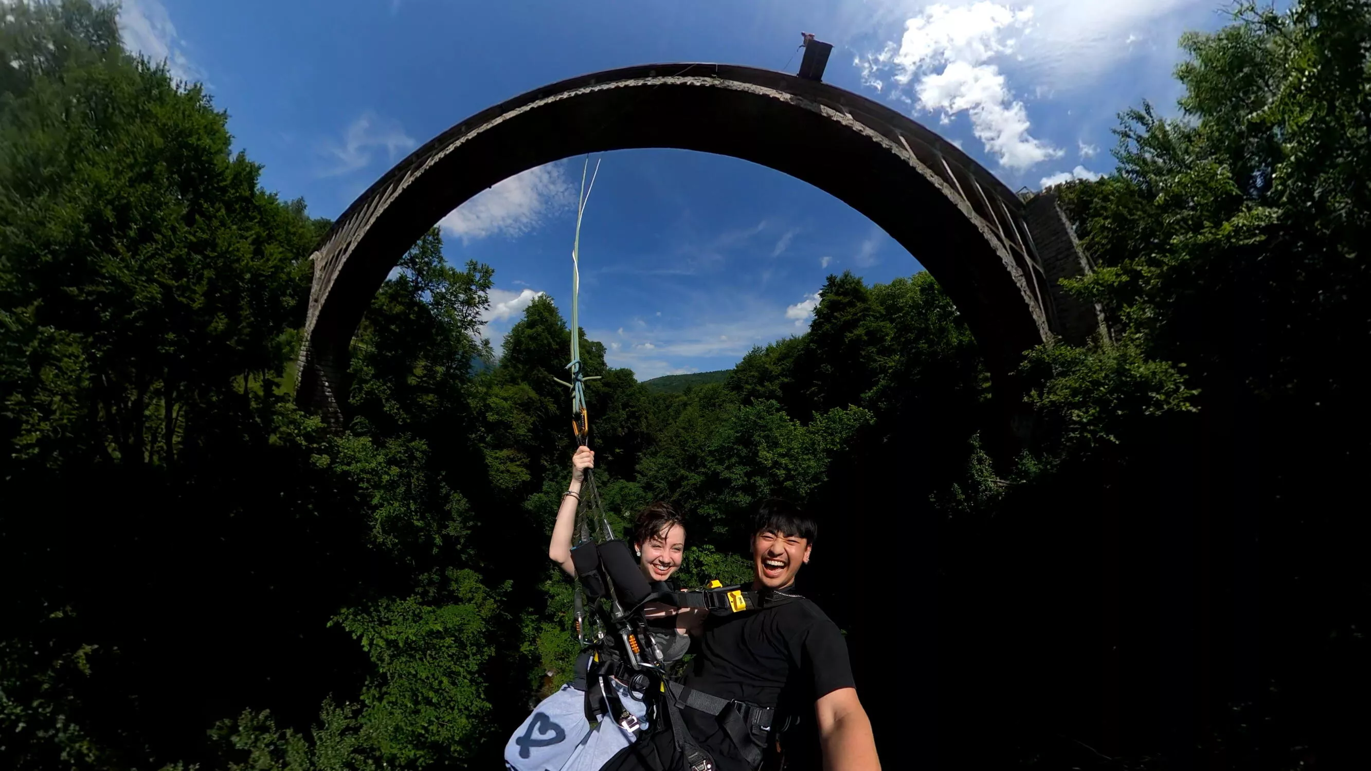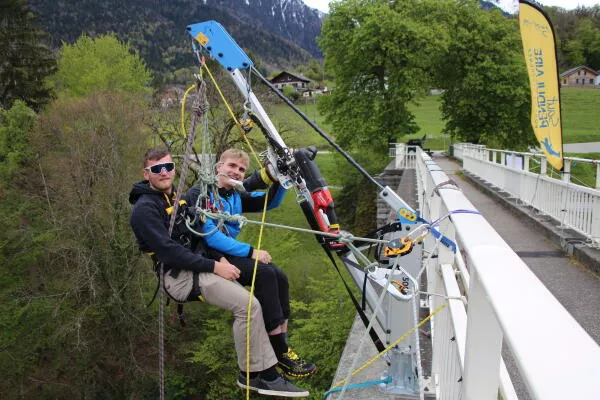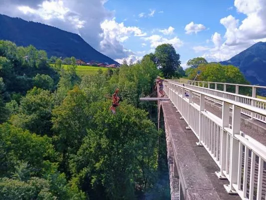 C'est en tandem, relié l'un à l'autre, que vous partirez en orbite sous l'arche du grand pont de Seythenex, attaché solidement aux cordes.